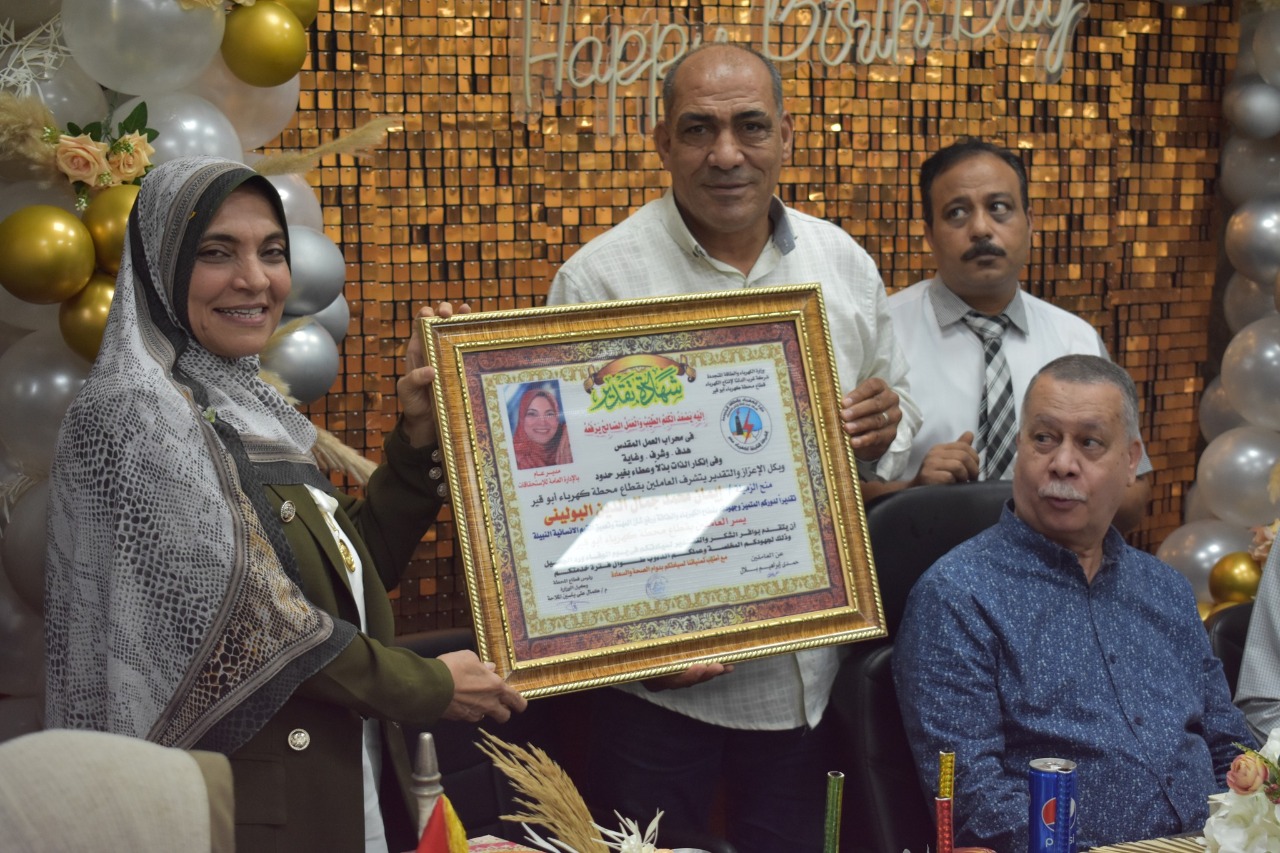 وقد قام السيد المهندس/ رئيس مجلس الإدارة والعضو المنتدب بتكريم سيادتها متمنياً لها دوام الصحة وحياة سعيدة في ظل أسرة كريمة.